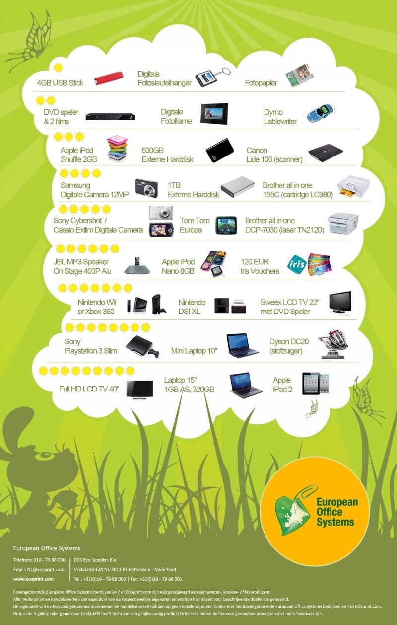 Cartridges van European Office Systems zijn gegarandeerd vrij van gebreken en gelijk aan of beter dan het origineel voor alle documenten, zowel teksten als afbeeldingen, gedurende hun hele levensduur. Onze ISO-gecertificeerde cartridges zijn geschikt voor gebruik in alle grote printermerken. Wij garanderen dat de fabrieksgarantie op geen enkele wijze nadelig kan worden beïnvloed door het gebruik van onze cartridges. In geval van problemen of opmerkingen van klanten maken wij een zorgvuldige analyse, en treffen wij de noodzakelijke maatregelen om onze producten te verbeteren.